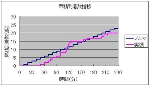 「ロット到着間隔のWIPへの影響の考察(1)」で述べた仮定 2時間の間には必ず12ロットが到着する性質を持つとします。 という仮定は、どうもしっくり来なかったので、代案をいろいろ考えてみました。ここで述べた例ではロットの到着は平均10分に1…